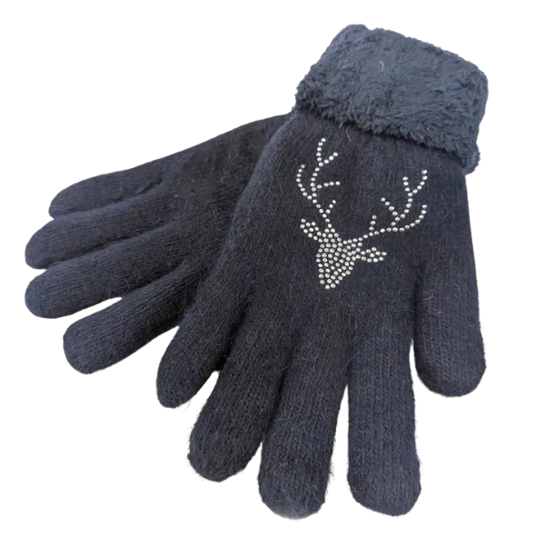 Stag Faux Fur Gloves - Navy Blue